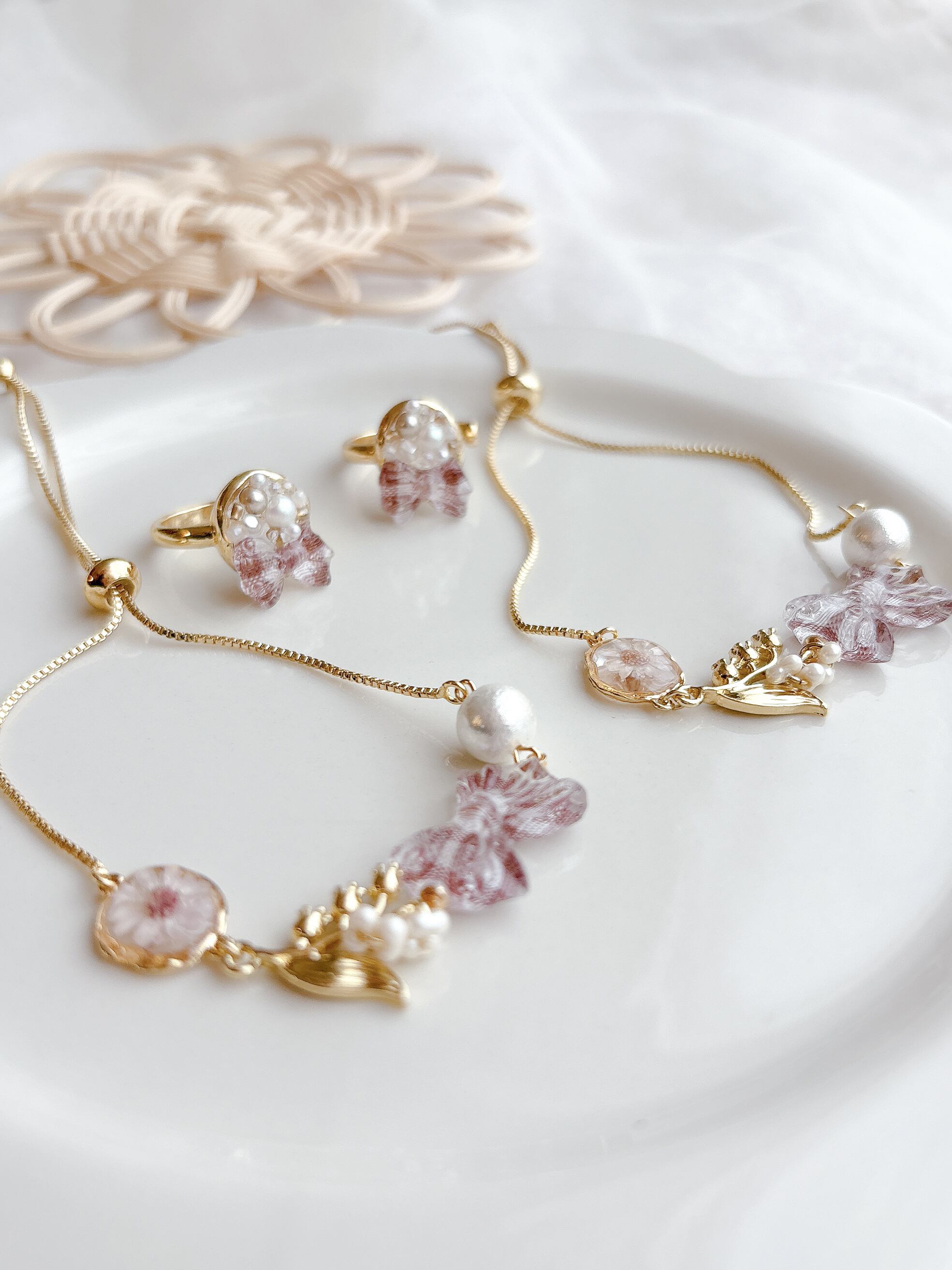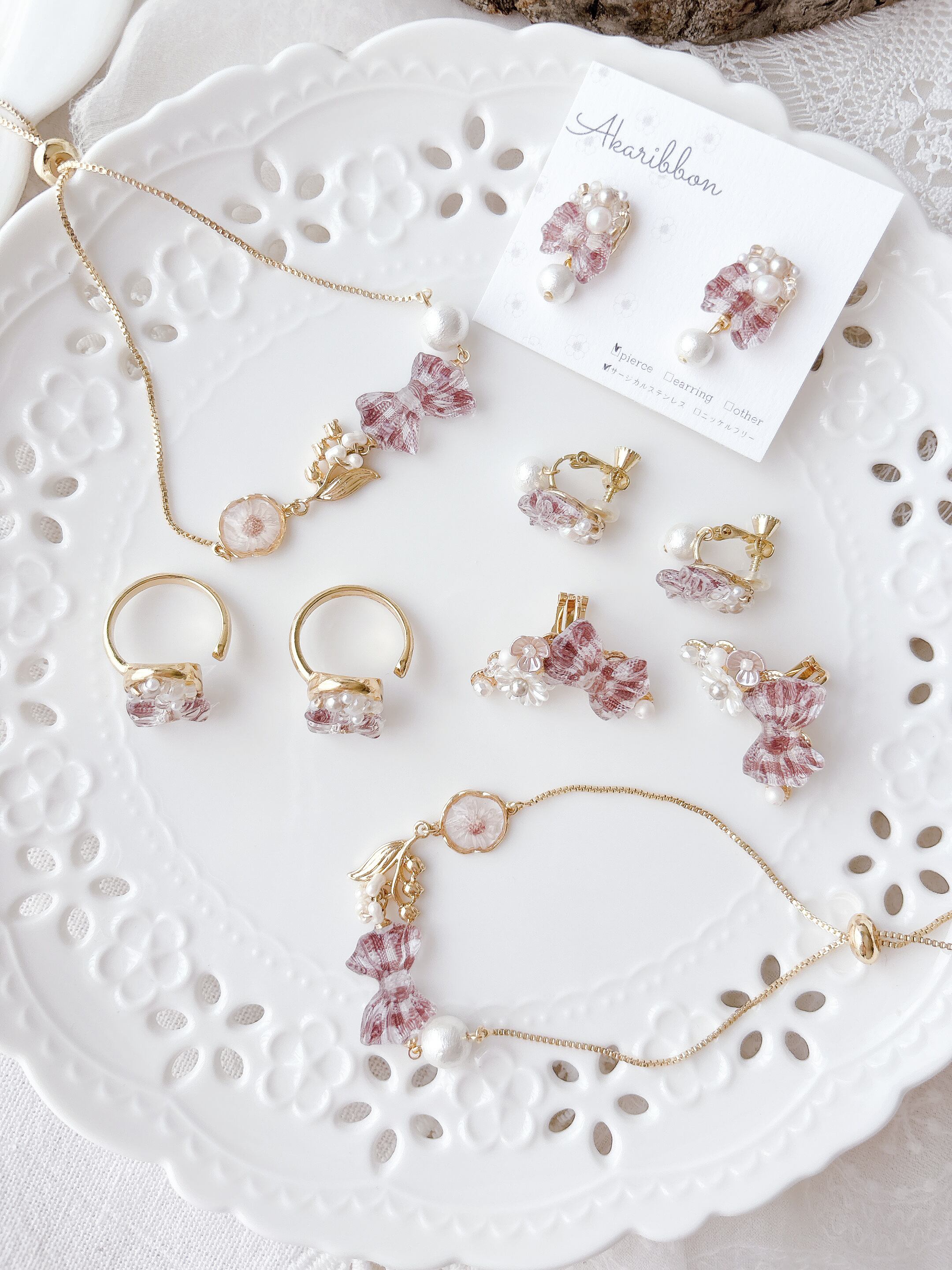 ⋈ 1つ1つ手作業で製作していますので、色や形、お花やビーズの配置に違いがある場合がございます。ご了承ください。