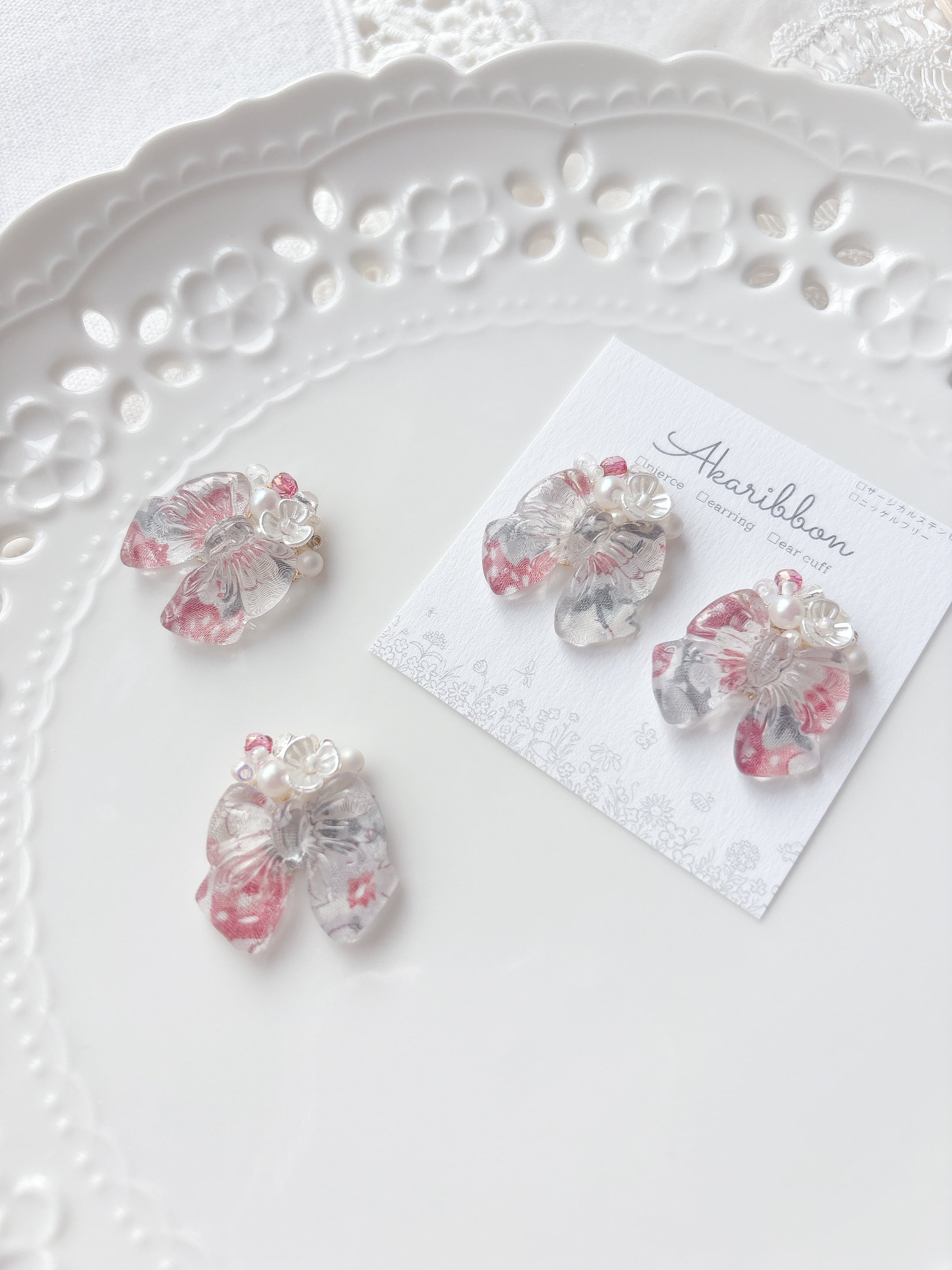 ⋈ 1つ1つ手作業で製作していますので、色や形、お花やビーズの配置に違いがある場合がございます。ご了承ください。