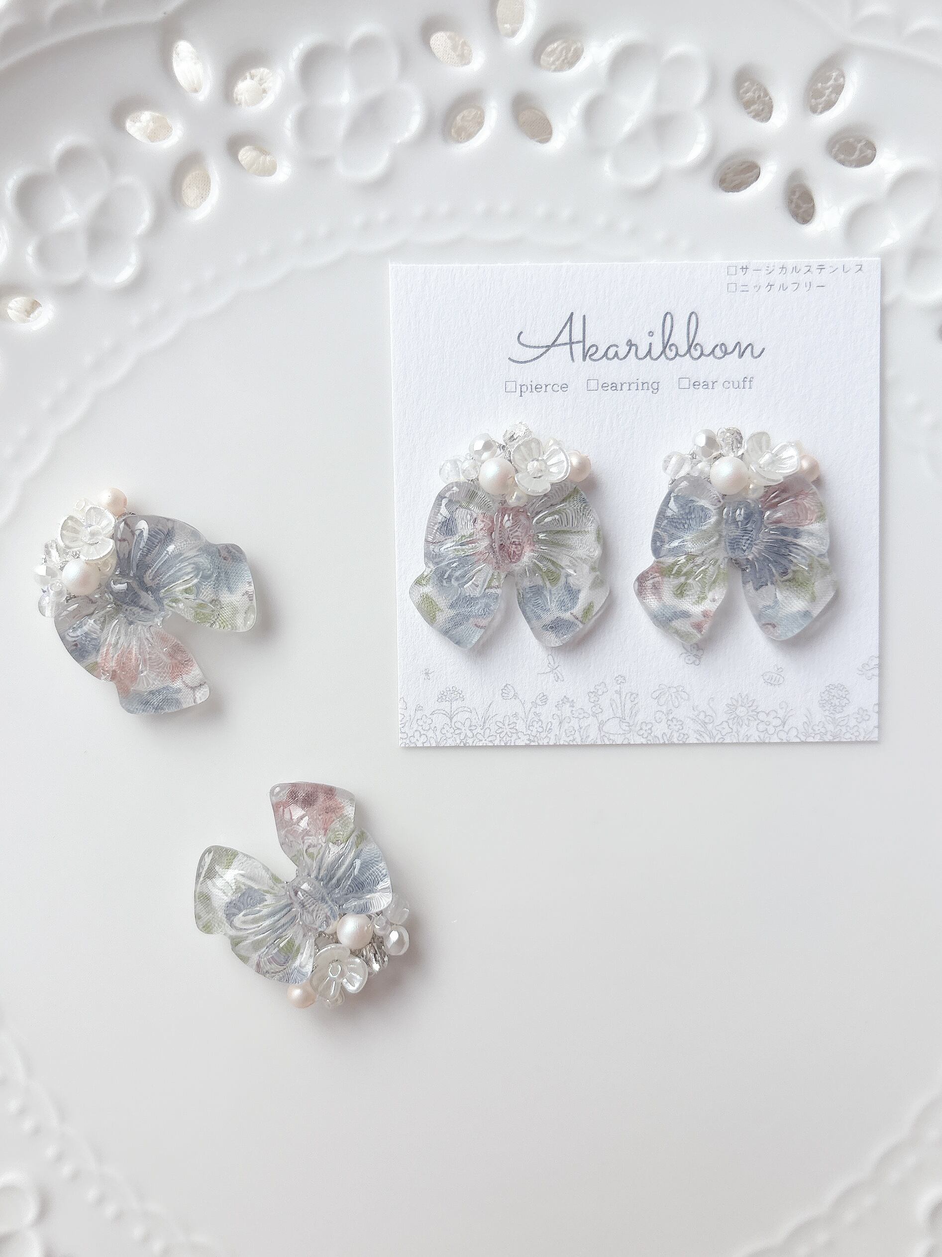 ○ハンナローズ(ブルーグレー)✖️シルバー○hanatabaピアス/イヤリング