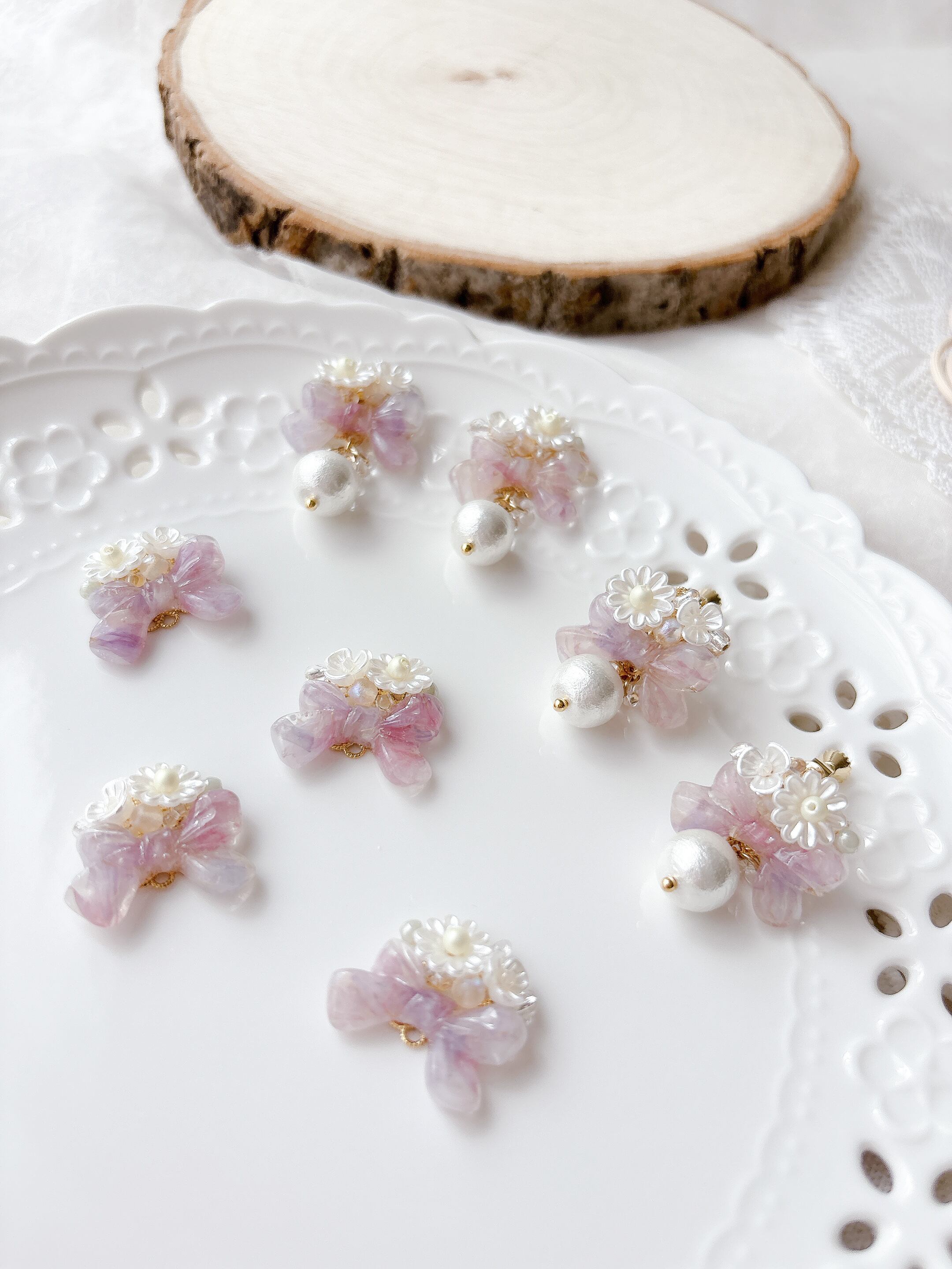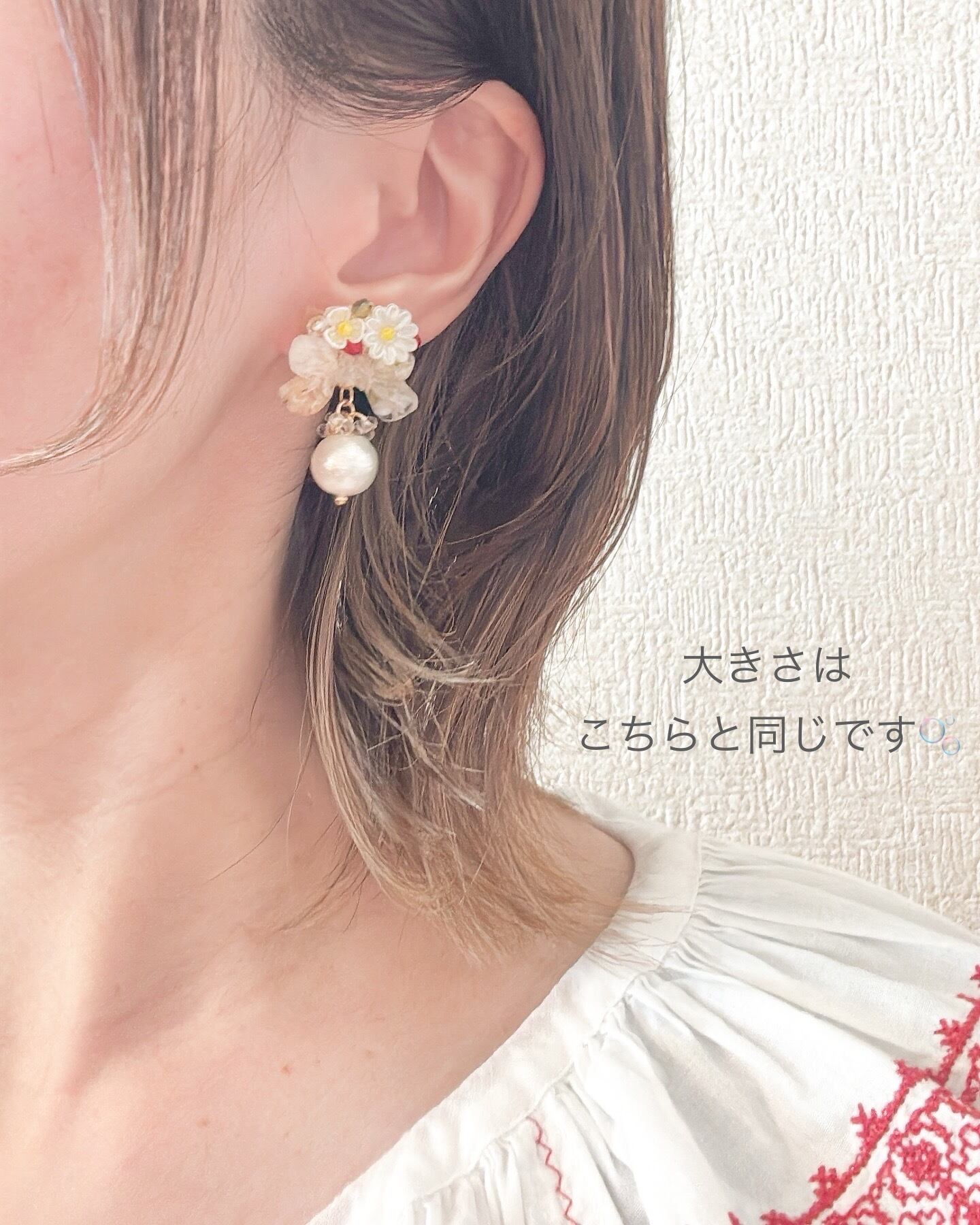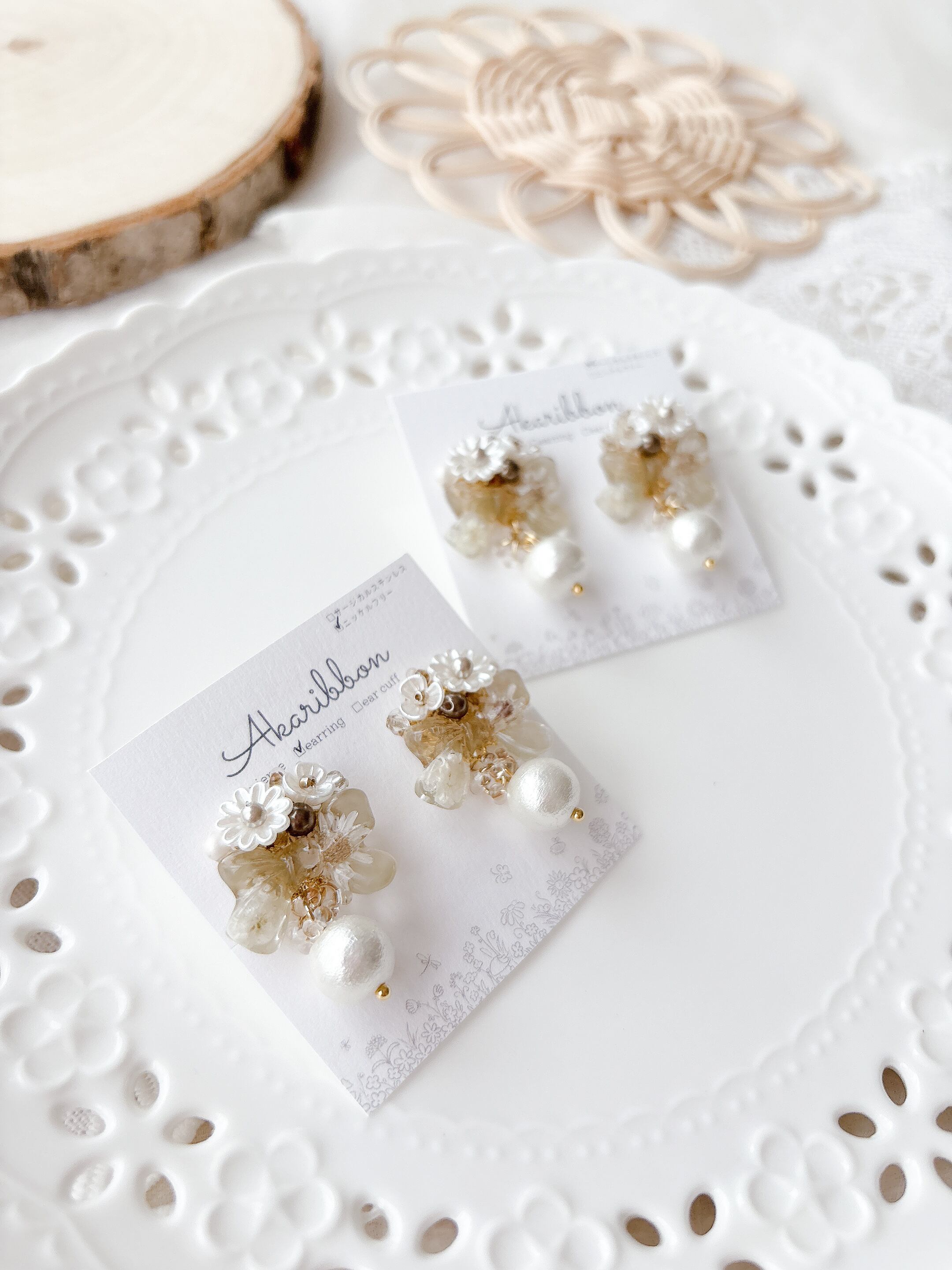 コットンパールが揺れる花束ピアス/イヤリングです。