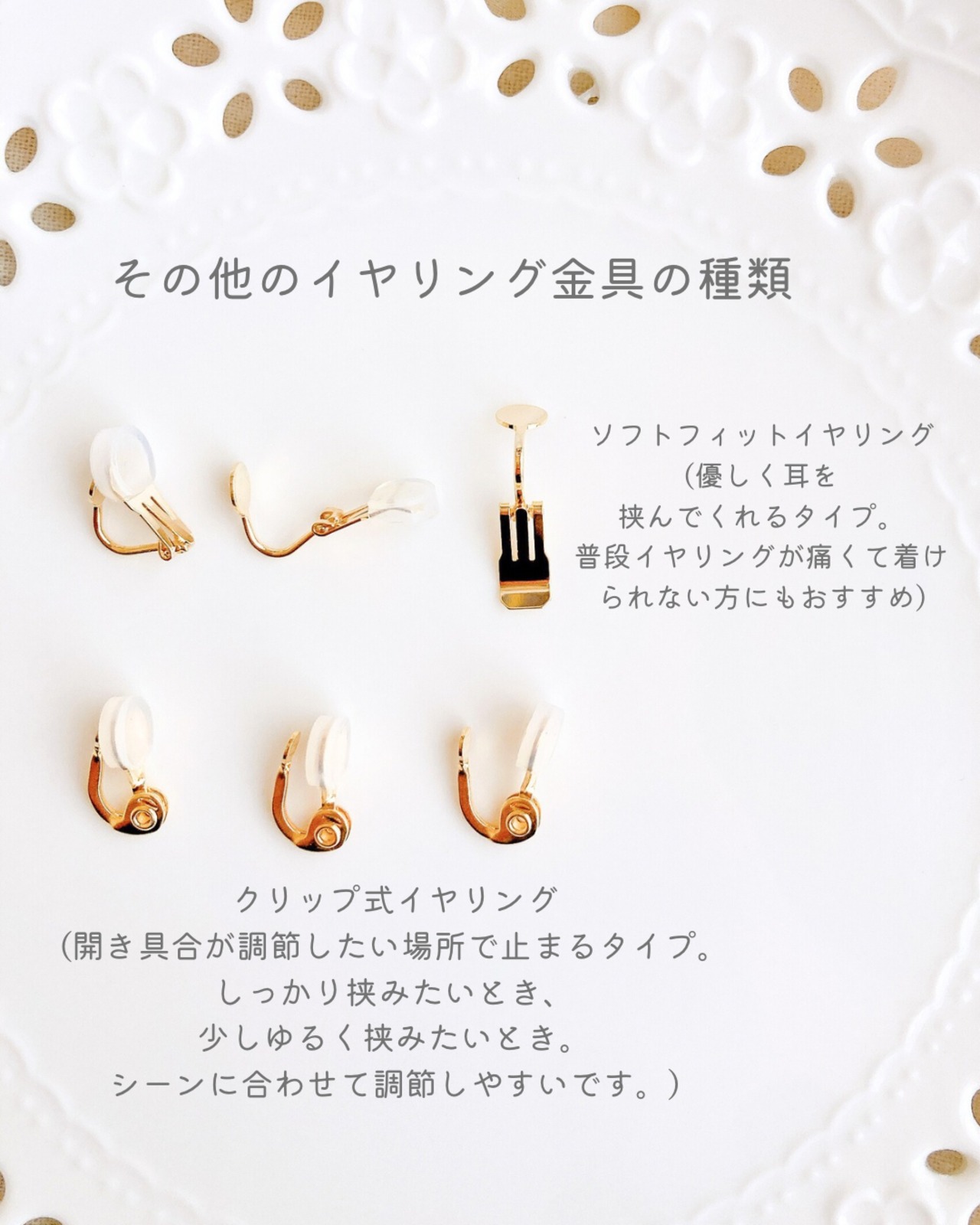 ピアス、イヤリングのポスト部分以外の金具は