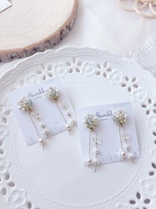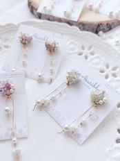 ⋈ ビーズを使用したデザインは、一つ一つバランスを貼り付け、編み込みをしているため、左右でビーズの配置や数が異なる場合がございます。