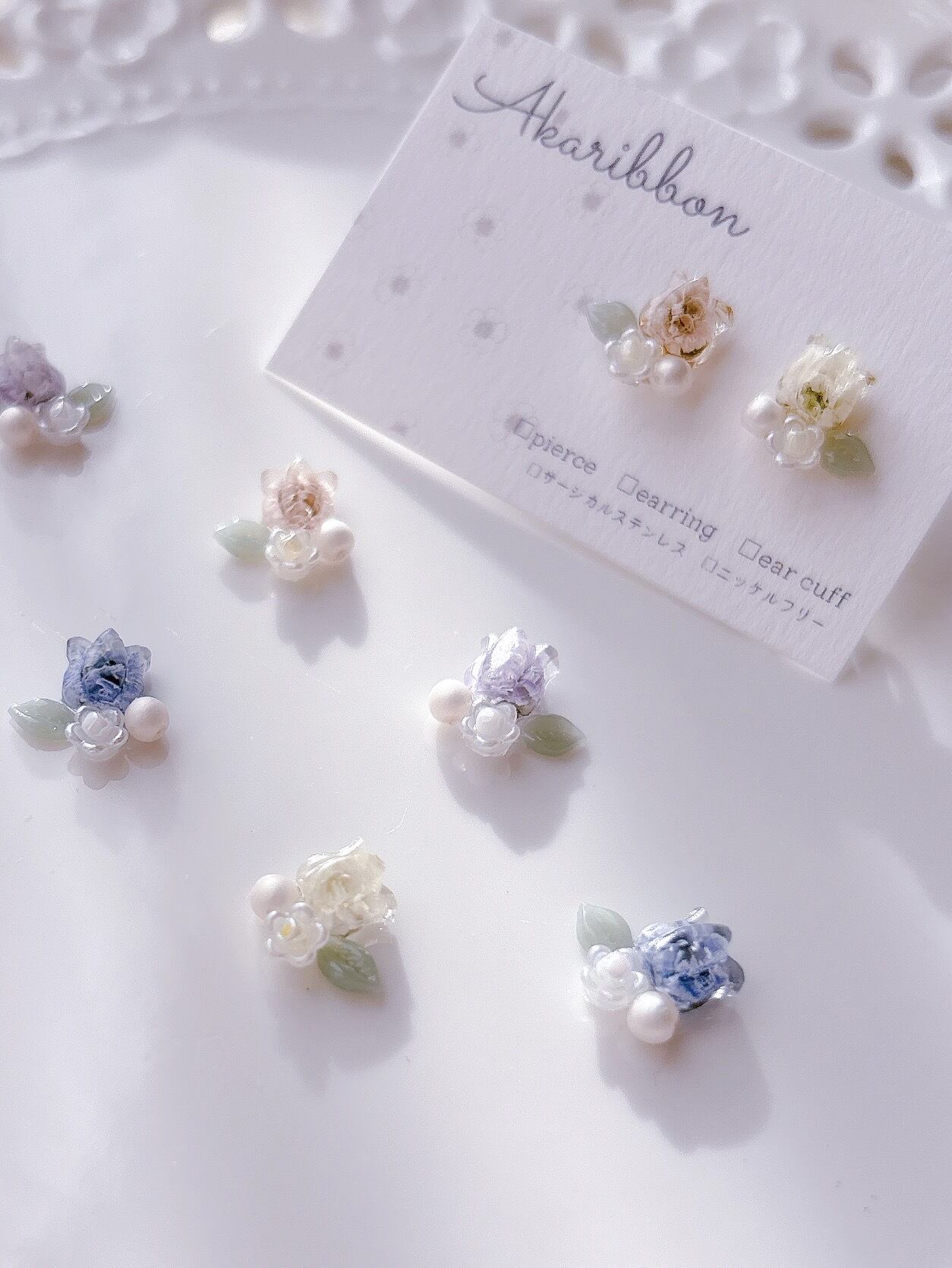 イヤリングはネジバネイヤリング、低アレルギーのニッケルフリーメッキを使用しており、全てのイヤリングにはシリコンカバーをお付けしています。