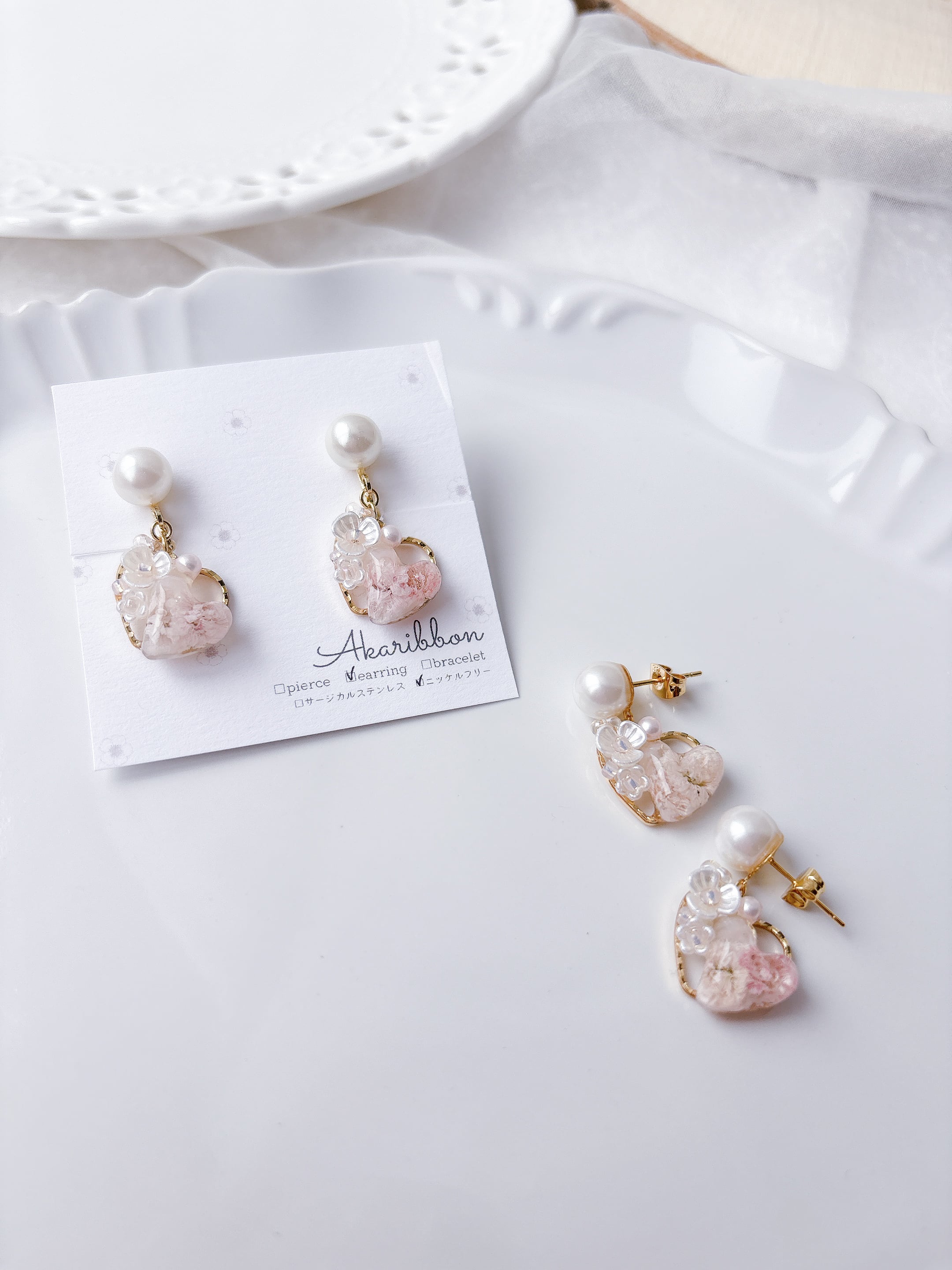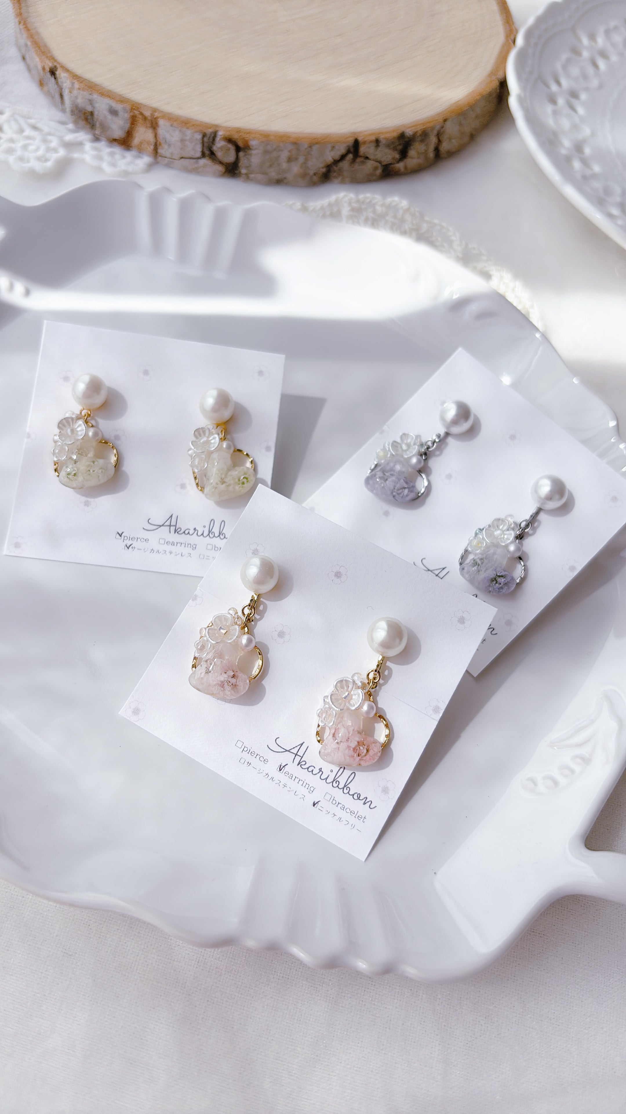 イヤリングはネジバネイヤリング、低アレルギーのニッケルフリーメッキを使用しており、全てのイヤリングにはシリコンカバーをお付けしています。