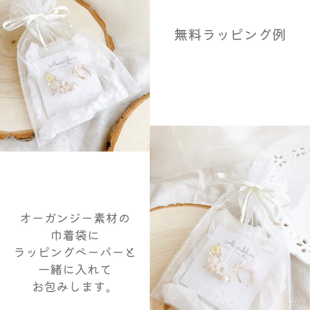 ⋈ ビーズを使用したデザインは、一つ一つバランスを貼り付け、編み込みをしているため、左右でビーズの配置や数が異なる場合がございます。